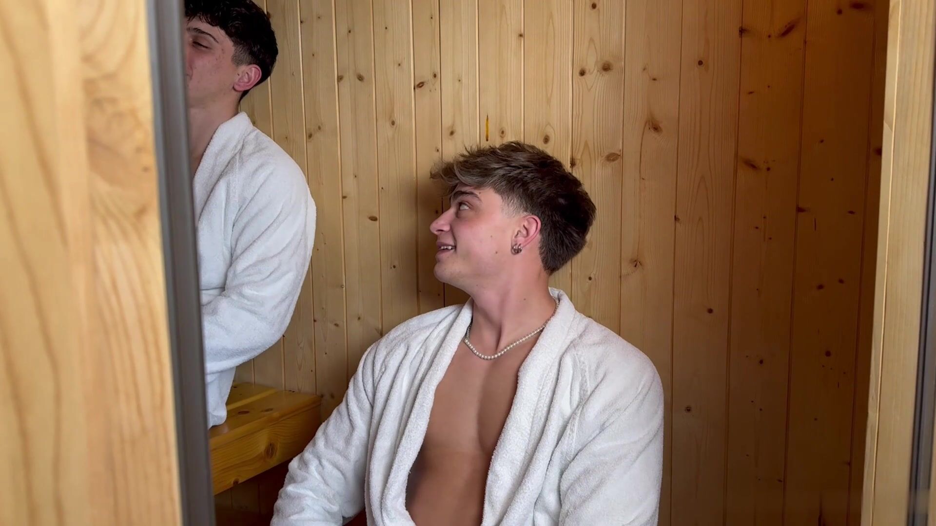 Me and @sexysamu are on holiday today in this fantastic house. We immediately got comfortable in the sauna. First I started massaging his back, then we're jerking off. I turned him over and started to fuck him, until it was my turn. I cum in his ass while I was at 90.