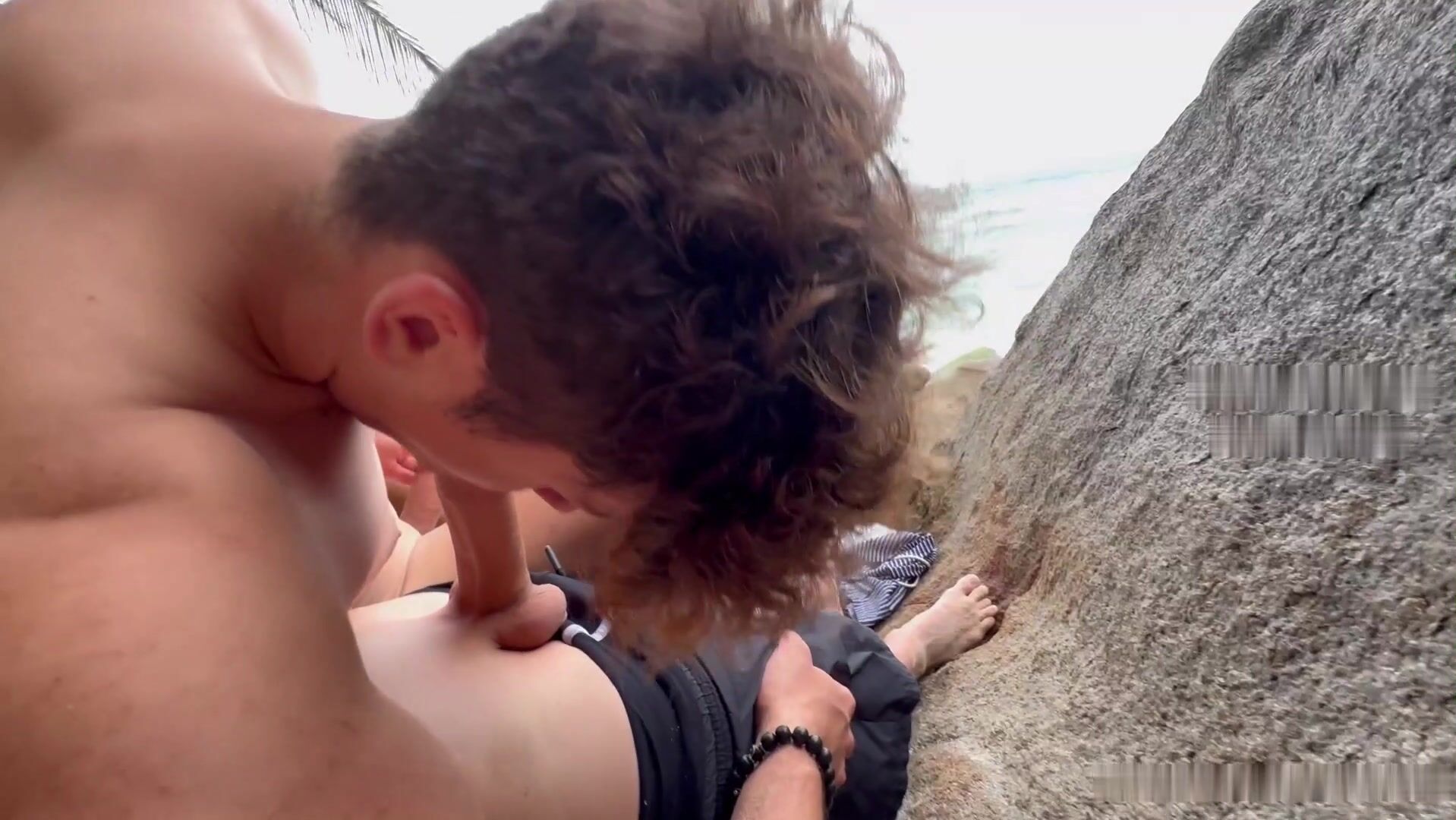 SEXTAPE at the beach, fucked my boyfriend HARDCORE and filling up his hole with my big dick